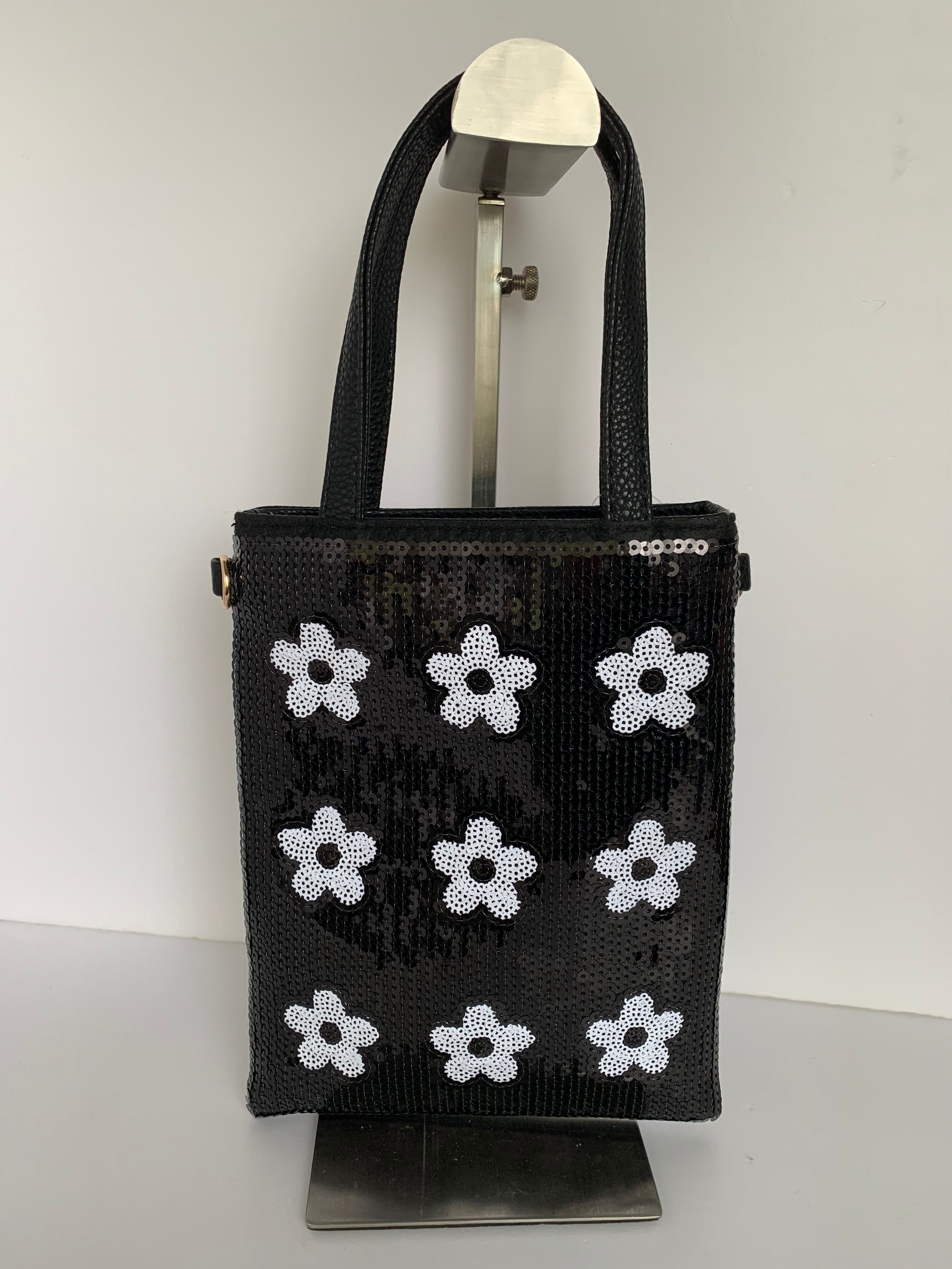 スパンコールショルダーバッグ モノトーンフラワー 限定入荷